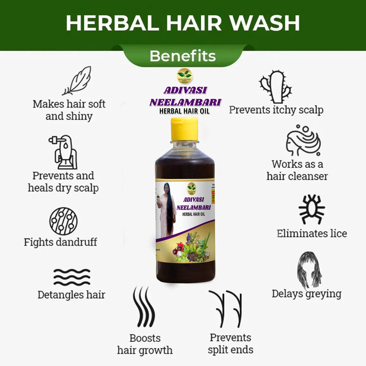CONTAINS: 108 type of Herbs, Dashwala, Loliswala, Soapnut, Bhrami, Kasthuri oil, Amla, Kadupatti, Menthya, lavancha,